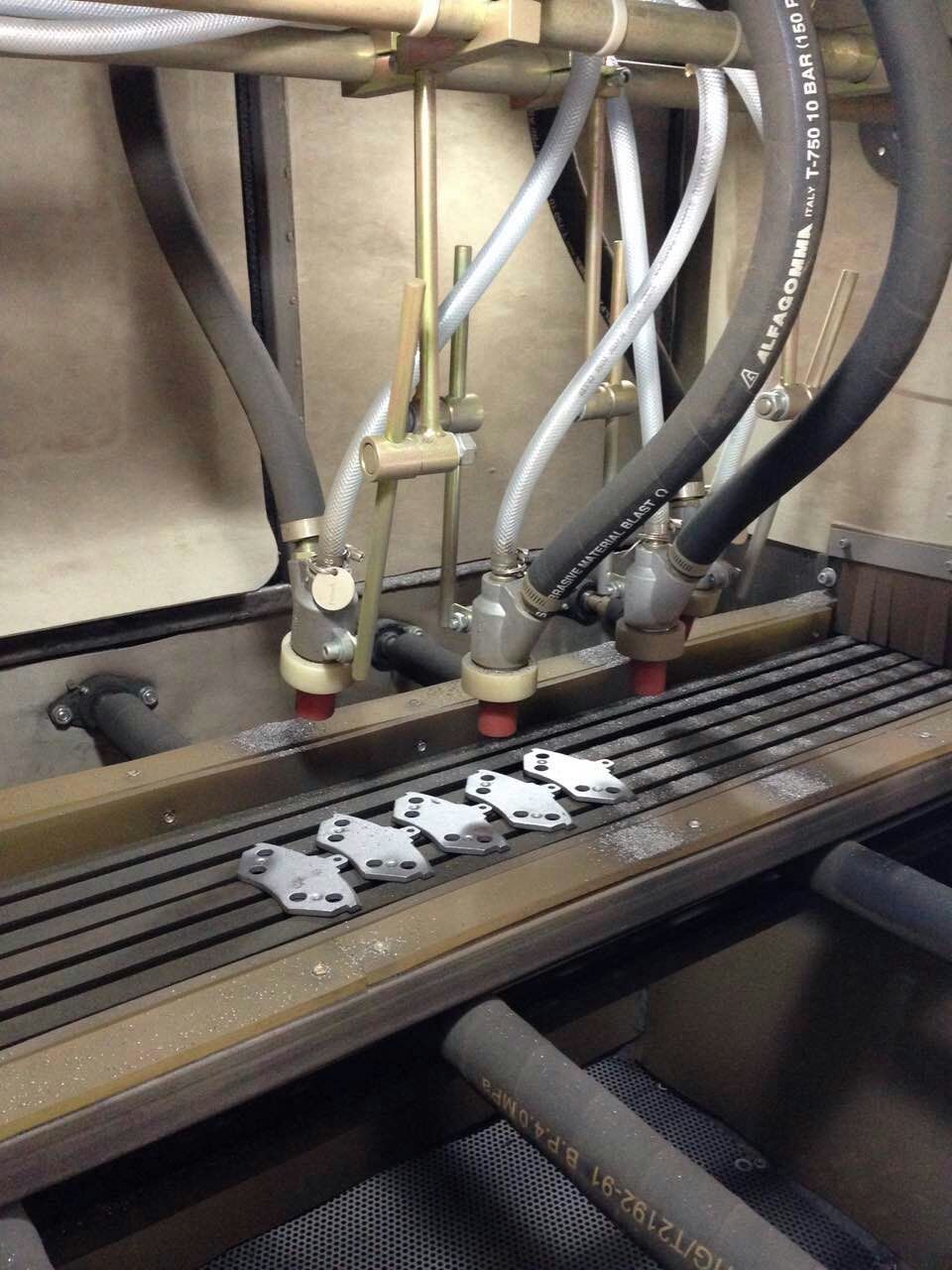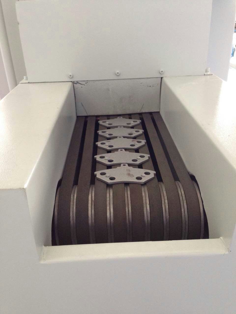 剎車片的生產(chǎn)過程中質(zhì)量尤為關(guān)鍵,其中最重要的一個生產(chǎn)環(huán)節(jié),鐵才與剎車片雛形粘合,粘合前需要通過自動噴砂機(jī),才能有效的粘合。